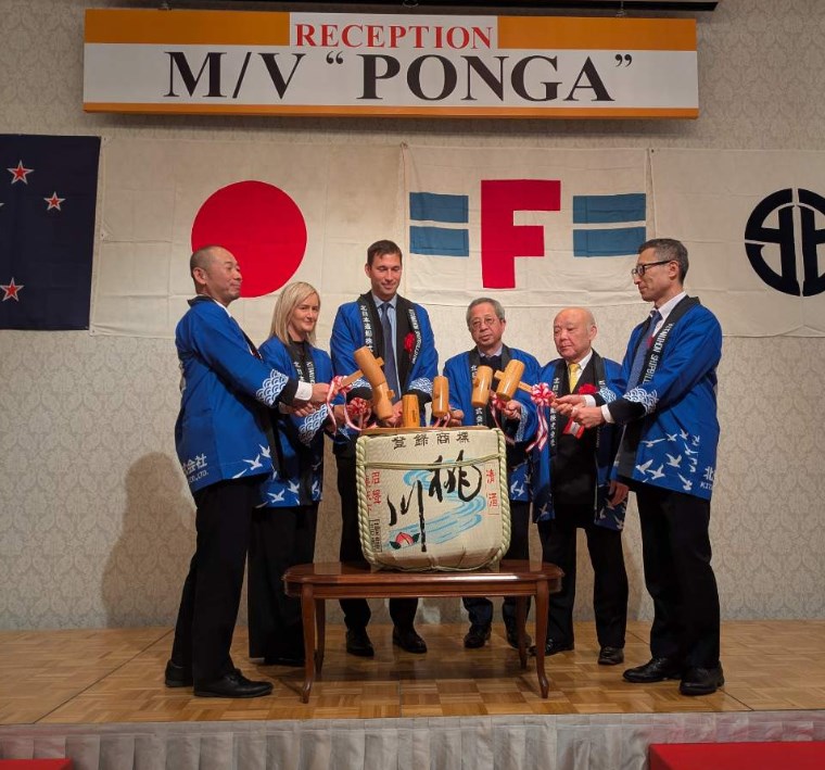 「PONGA」が世界のフルーツ輸送に寄与し、船主殿、傭船者殿、そして関係者の皆様にとりまして宝船になることを心より祈念しております。今後も弊社一丸となり、高品質商船の提供に鋭意取り組んで参ります。
