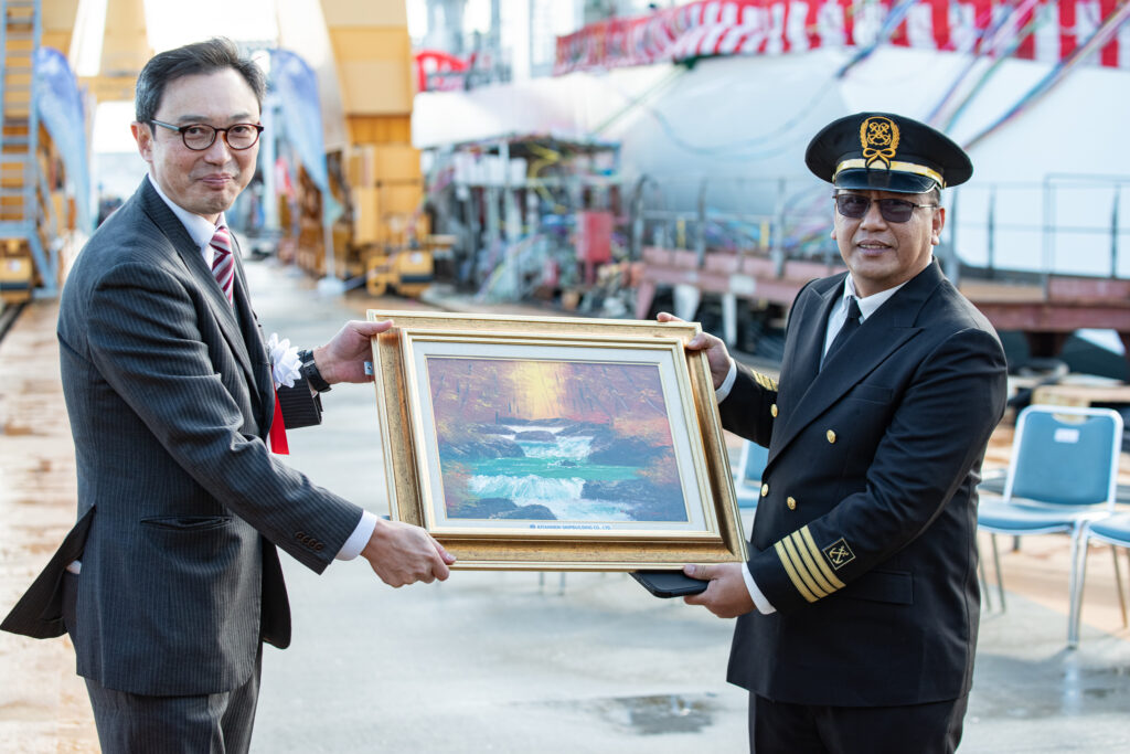 船主殿は東京、傭船者様は遠路はるばるニュージーランドからご参列頂き、盛大に式典を執り行う事ができました。造船所として心より感謝申し上げます。