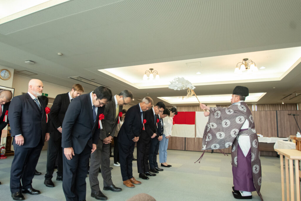 船主殿は遠路はるばるシンガポールからご参列頂き、その他、米国、スペイン、愛媛県、高知県、東京都からたくさんのご来賓にお越し頂きました。当日はあいにく低気圧による荒天で、本社レセプションルームでの式典となりましたが、無事に執り行う事ができました。造船所として心より感謝申し上げます。