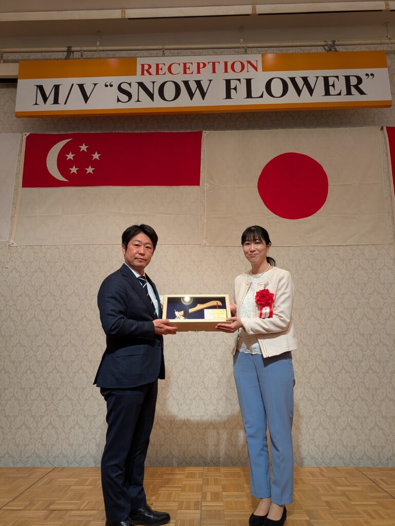 「SNOW FLOWER」が世界のフルーツ輸送に寄与し、船主殿、傭船者殿、そして関係者の皆様にとりまして宝船になることを心より祈念しております。今後も弊社一丸となり、高品質商船の提供に鋭意取り組んで参ります。